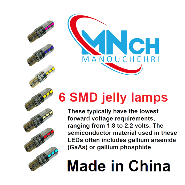 لامپ چراغ کوچک 6 اس ام دی مدل ژله ای باریک, قابل نصب برای چراغ کوچک انواع خودرو و موتور سیکلت, موجود در رنگهای متنوع